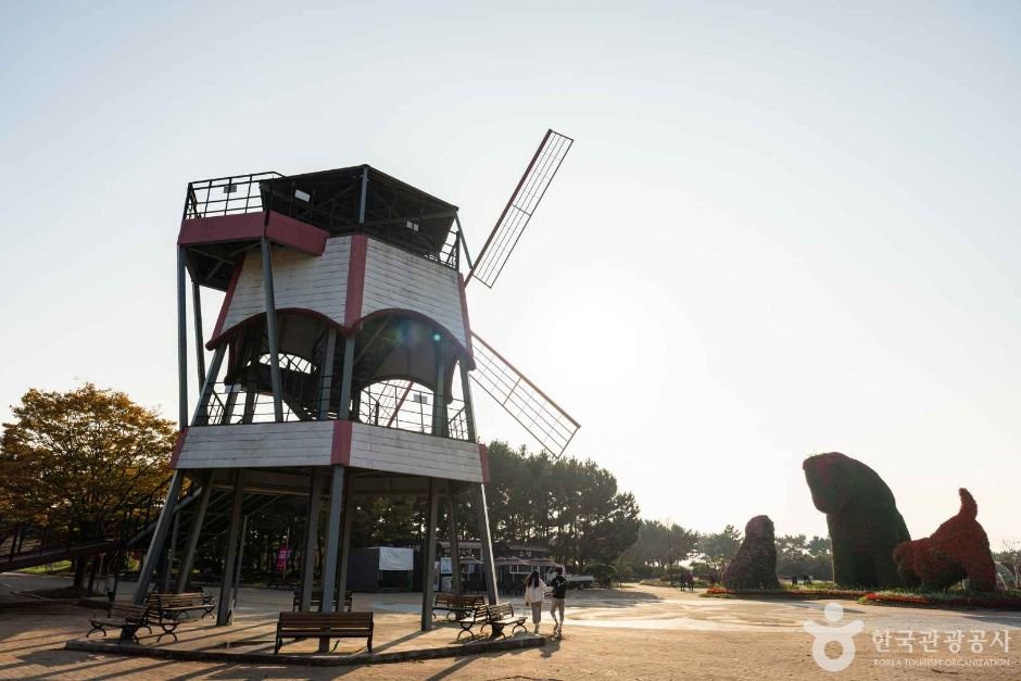 Der Korea Flower Park liegt in der Nähe vom Strand Kkotji, der bekannt für wunderschöne Sonnenuntergänge ist. Hier kann man von Frühling bis Herbst stets viele verschiedene saisonale Blumen bestaunen.