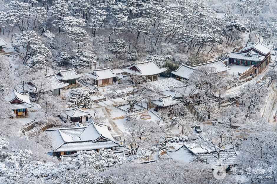 Der Tempel Jeondeungsa befindet sich in der Festung Samnangseong, die angeblich im Jahre 381 von den drei Söhnen von Dangun, dem Gründer Koreas, gebaut wurde. Er wurde während der Goryeo-Zeit Jinjongsa genannt und im Jahre 1282 zu seinem heutigen Namen umbenannt. Die Gebäude brannten im Jahre 1614 komplett nieder, wurden jedoch bis 1621 wiederhergestellt. Der Tempel beherbergt einige bedeutende architektonische Werke, darunter die Hallen Daeungbojeon und Yaksajeon, und bietet verschiedene Arten von Templestay-Programmen an, bei denen man mehr über die koreanische buddhistische Kultur lernen kann.