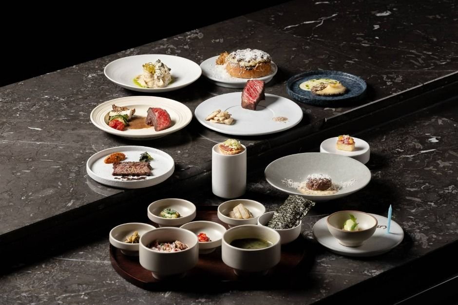 Wumok ist ein Omakase-Restaurant in der Nähe des Dosan-Parks, das Hanu (koreanisches Rindfleisch) mit seinem Grundsatz aus Feuer, Holz, Hanu und Rauch neu interpriert. Es nutzt hochwertiges Fleisch aus Goryeong, Gyeongsangbuk-do und bereitet es unter sorgfältiger Kontrolle von Temperatur, Abstand etc. zu, sodass die Textur und der Geschmack des Fleischs optimal hervorkommen.